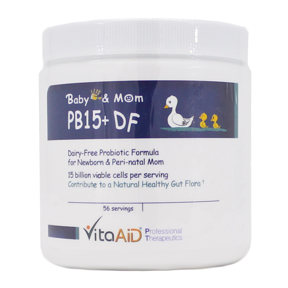 Supports perinatal and neonatal normal flora.*Baby and Mom-PB15 DF is a dairy free probiotic formula...