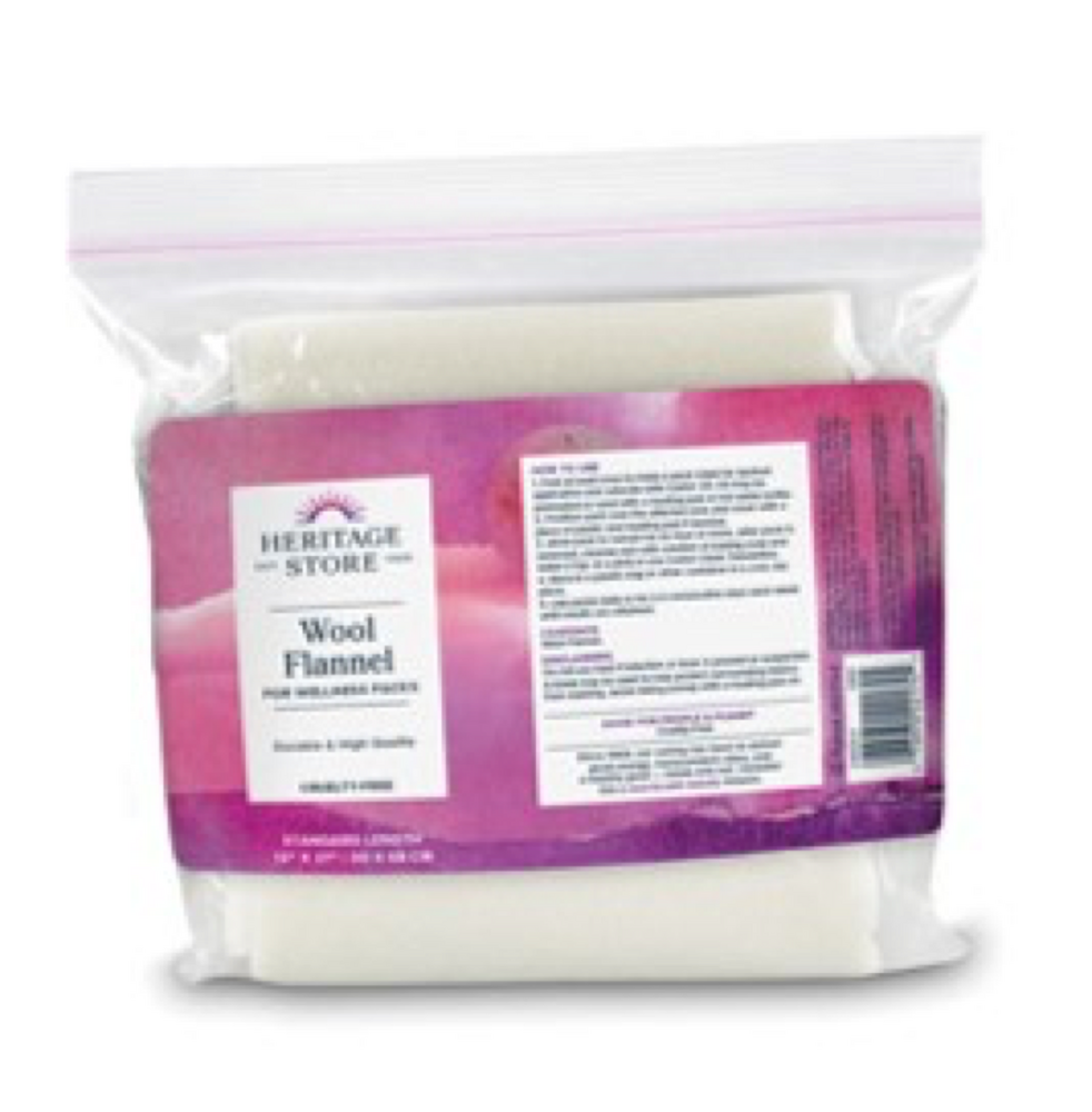 Pure, Unbleached Wool Flannel A richly textured, heavy quality fabric used for castor oil packs....