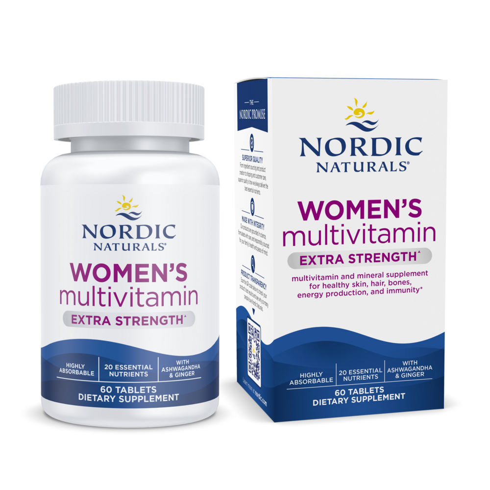 nordic naturals® women's multivitamin extra strength highly absorbable 20 essential nutrients with ashwagandha & ginger.