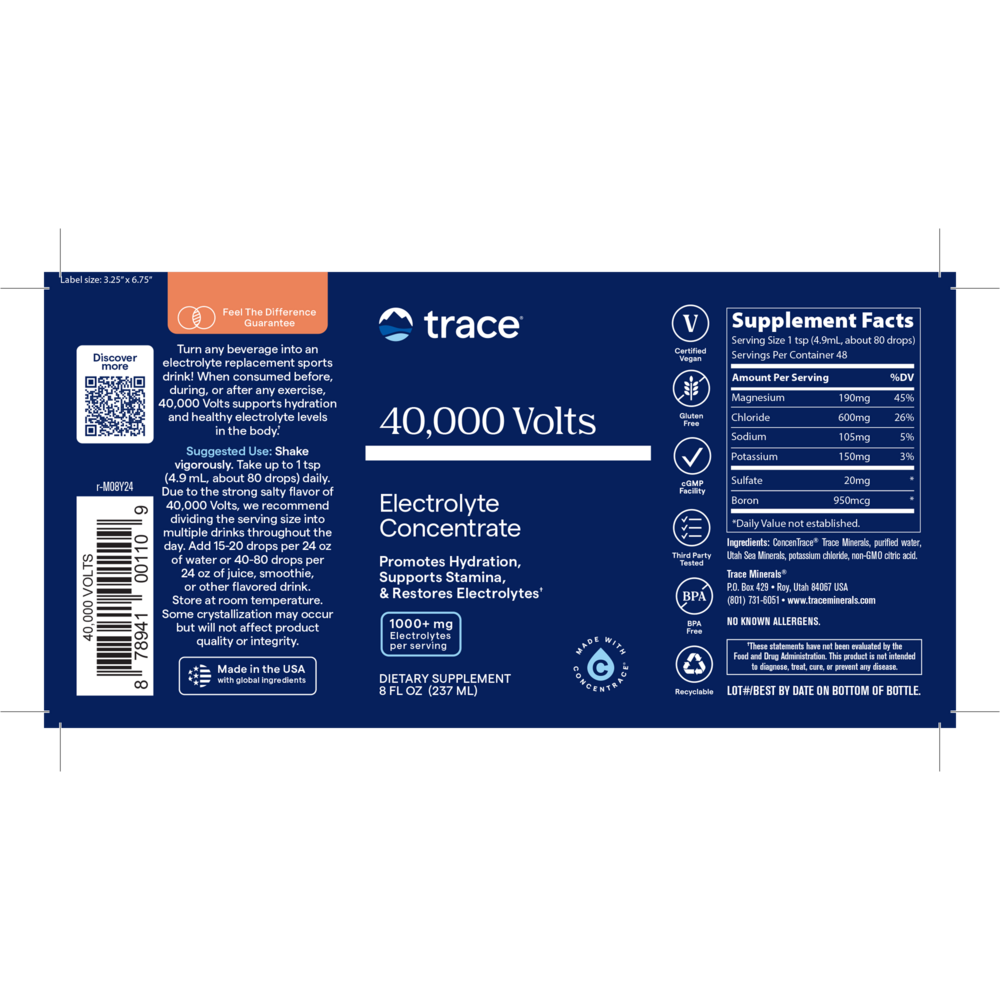 40,000 volts! Electrolyte Concentrate can turn any beverage into an electrolyte sports replacement drink. Add 1 teaspoon (approximately 80 drops) to a large glass of juice or other beverage anytime electrolyte replacement is desired.*