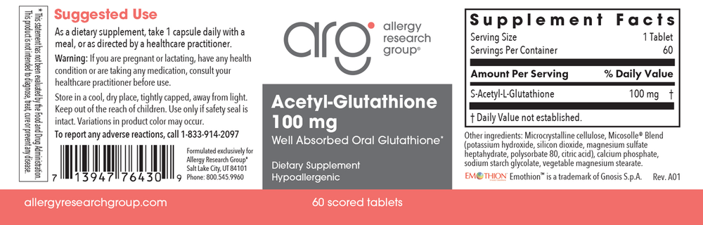 Acetyl-Glutathione is a novel oral acetyl-glutathione formulation that is stable in the stomach and gastrointestinal tract, well absorbed, and able to enter the cells directly and present to the cytosol for mitochondrial entry.* Acetyl-Glutathione uses pure Emothion® glutathione as the starting material.**Also see a review article on glutathione by Michael Ash, BSc, DO, ND, F.DipION, and Marty Jones, PharmD that discusses acetylated oral glutathione.