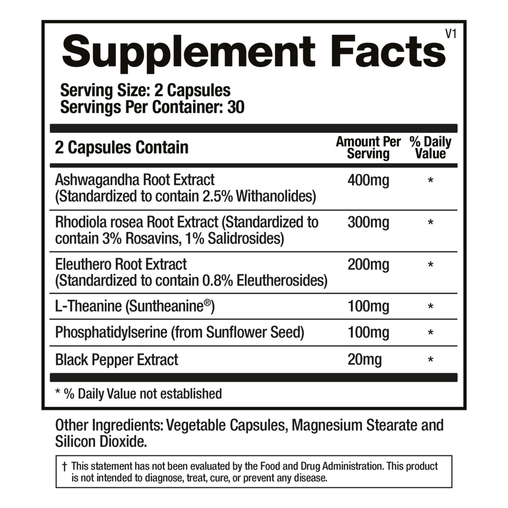 *Boost your mental state with adaptogens that support focus and energy, including ashwagandha, phosphatidylserine, and eleuthero ginseng