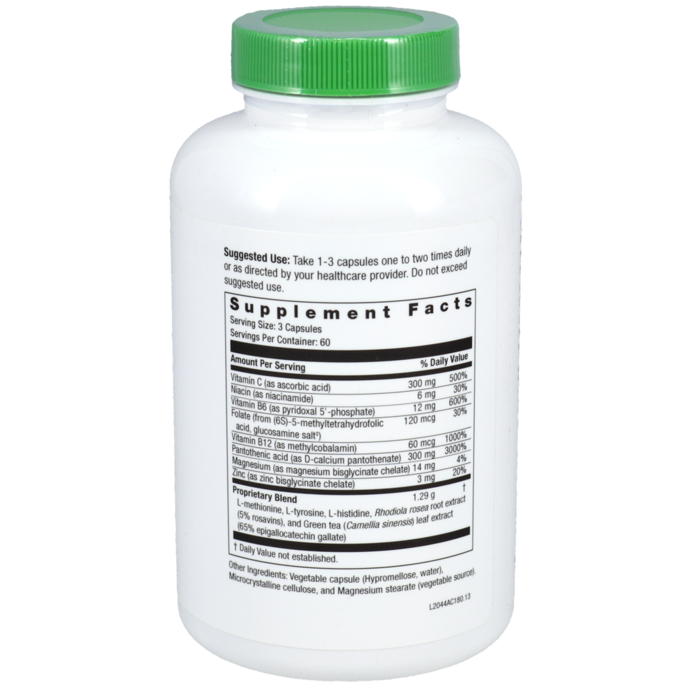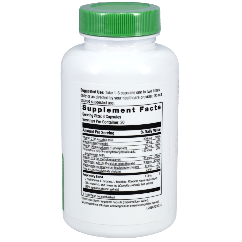 L-methionine, L-tyrosine, L-histidine, Rhodiola Rosea root extract (5% rosavins), and Green tea (Camellia sinensis) leaf extract (65% epigallocatechin gallate)