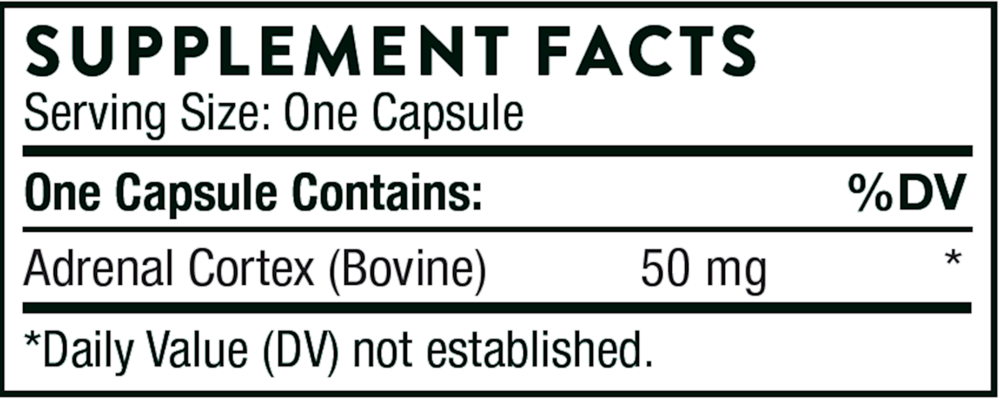 In today's ""high-stress"" world, lifestyle habits that deprive us of adequate rest and exercise, along with dietary habits fraught with caffeine and refined sugars, can, over time, take their toll on the adrenal glands. Extracts from adrenal cortex tissue can play a valuable role in supporting healthy adrenal glands – and help maintain immune function and promote an energetic feeling.* Glandular extracts also support healthy levels of cortisol.* Thorne's Adrenal Cortex provides extracts of adrenal cortex tissue for focused support of normal adrenal function.*