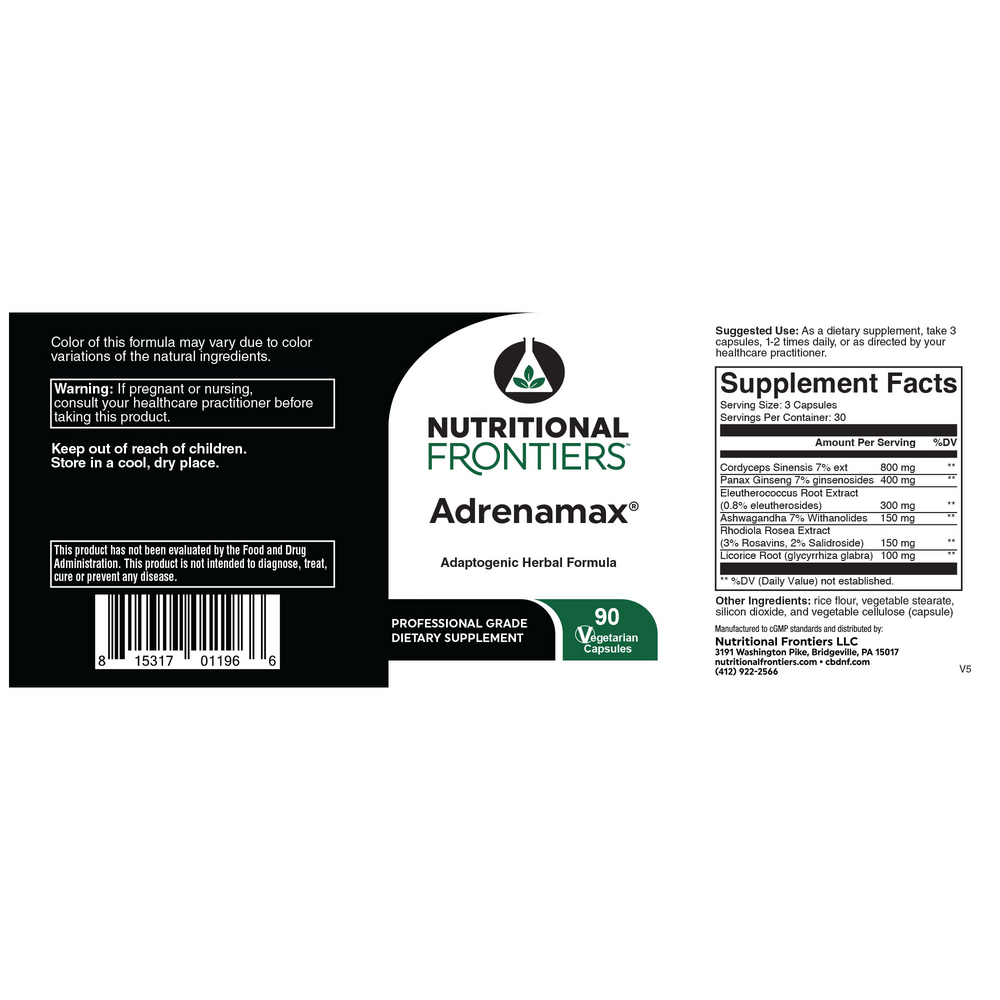 AdrenaMax III by Nutritional Frontiers promotes resilience to stress by supporting the function of the adrenal glands.* The herbs in Adrenamax III have traditionally been used to help with both hyper-function and hypo-function of the adrenal glands, hence they are classified as ‘adaptogens.*