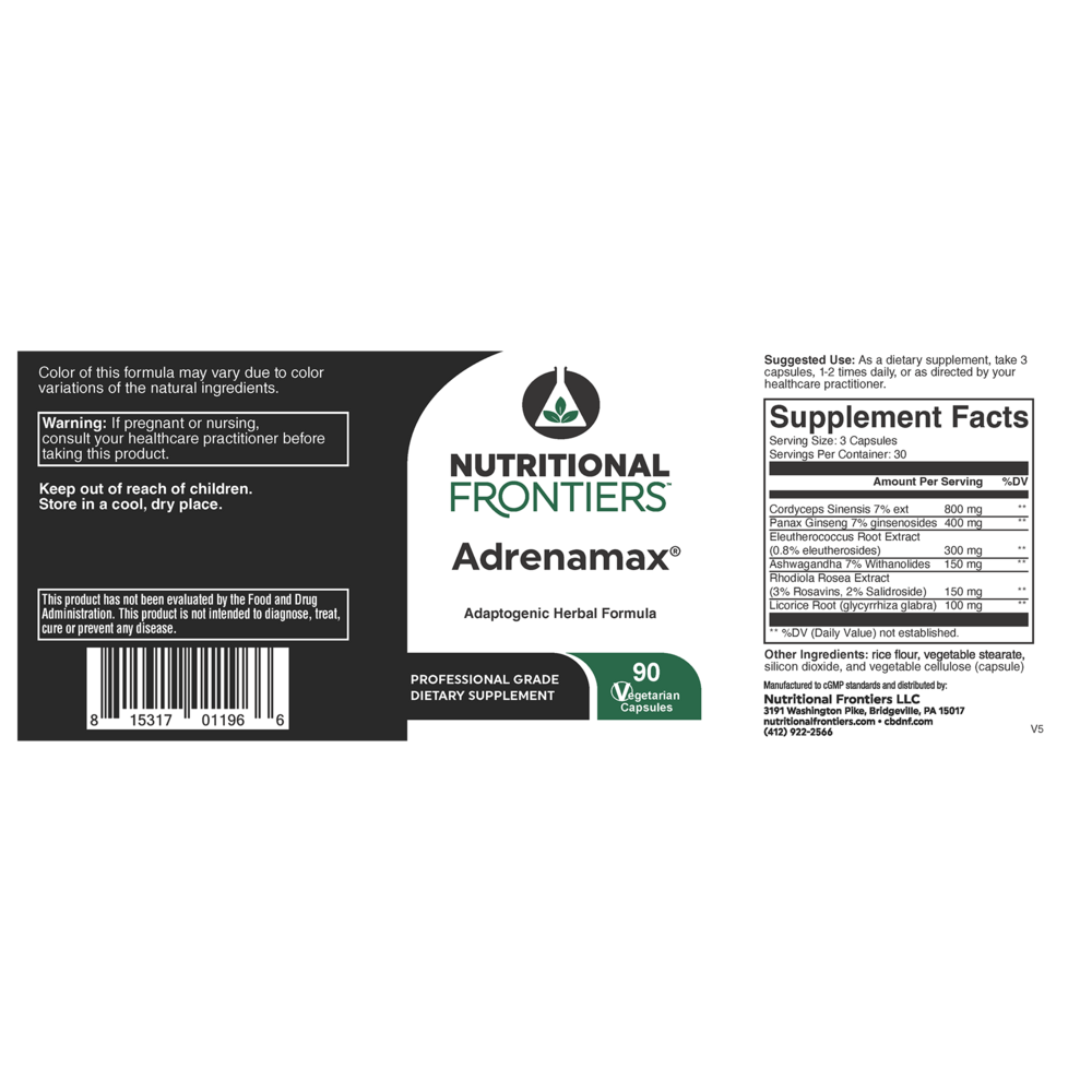 AdrenaMax III by Nutritional Frontiers promotes resilience to stress by supporting the function of the adrenal glands.* The herbs in Adrenamax III have traditionally been used to help with both hyper-function and hypo-function of the adrenal glands, hence they are classified as ‘adaptogens.*