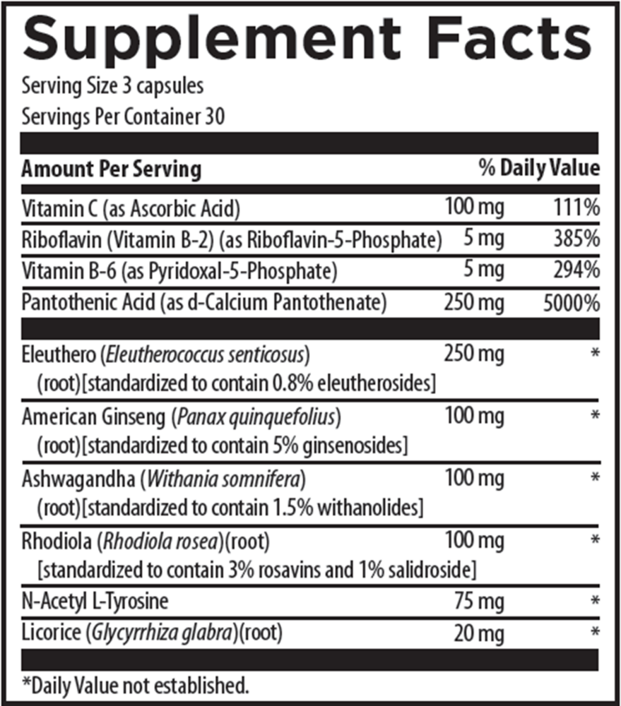 Adrenotone™ is a combination of standardized adaptogenic herbs and nutrients which are known to contribute to rejuvenating the adrenals. This product is designed to help support healthy cortisol levels, hypothalamic and pituitary function (HPTA axis), and catecholamine production (dopamine, norepinephrine, and epinephrine).*