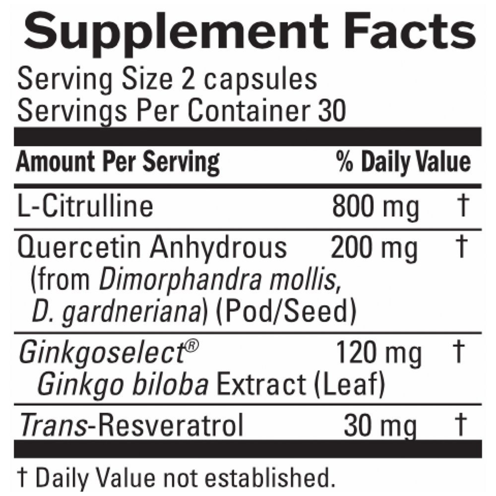 Our Advanced Blood Flow nitric oxide supplement supports healthy nitric oxide levels in your brain, which helps increase blood flow throughout your body.* Featuring clinically effective doses of L-citrulline, quercetin anhydrous, trans-resveratrol, and ginkgo biloba, not only does this formula improve cognitive function, it also supports cardiovascular, sexual, gut and liver health.