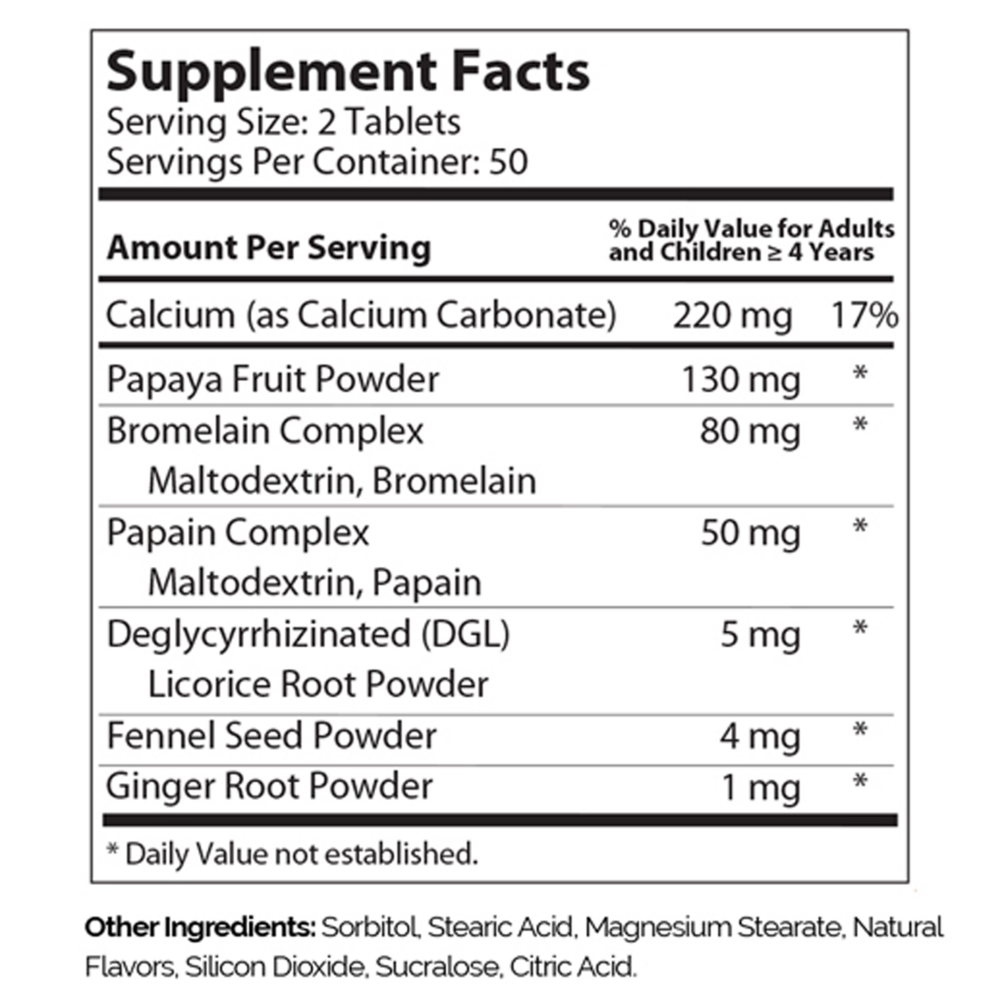 • Contains Papaya Enzymes, Bromelain and Calcium
