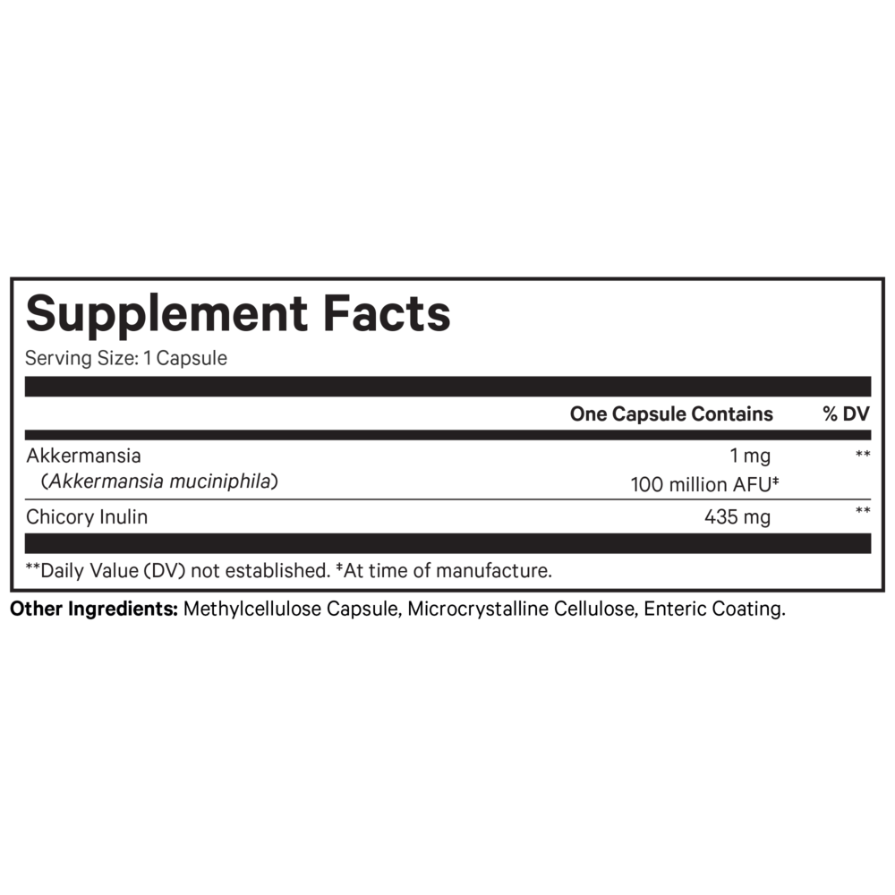 • This advanced Akkermansia supplement probiotics formula delivers 100 million AFUs (active fluorescent units) of akkermansia muciniphila per serving. Chicory root fiber, a type of soluble fiber, is also included to complement this combination.