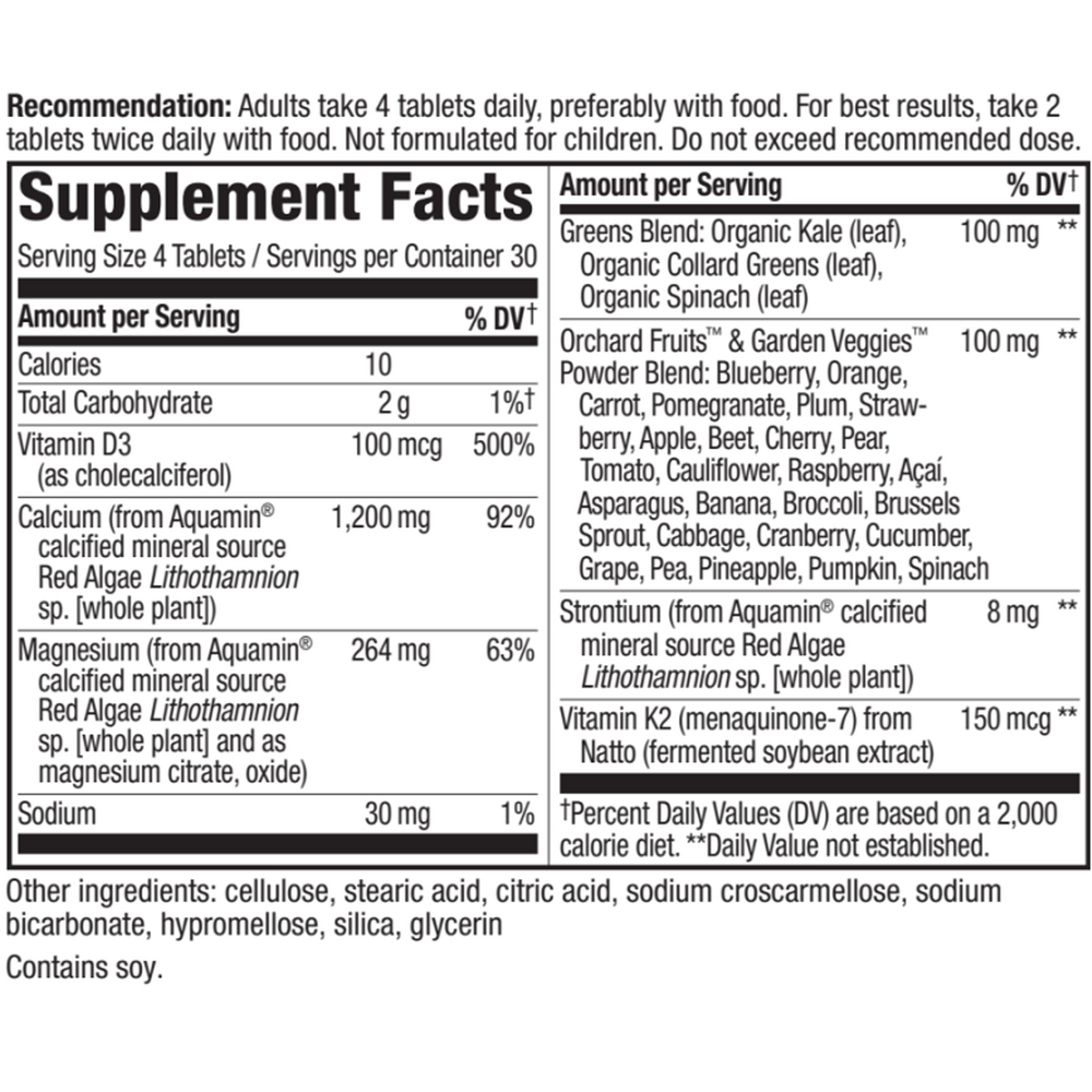 Premium tablets contain a unique food-based Orchard Fruits™ & Garden Veggies™ powder blend (100mg per serving).