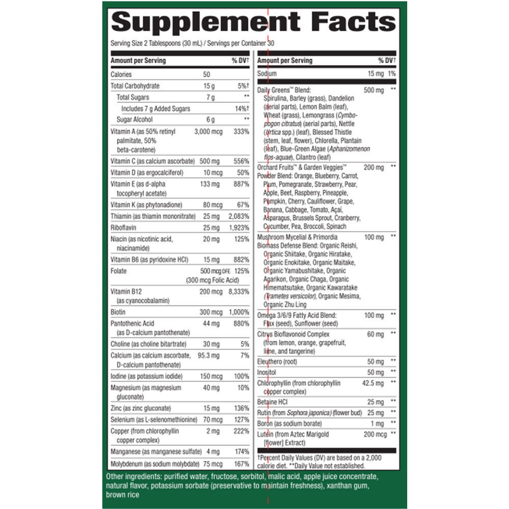 As a dietary supplement, adults take 1 capful or 2 tablespoons (about 30 mL) once daily. Best when taken with food or immediately after a meal. Can be consumed alone or mixed into beverages such as water, orange juice or smoothies. Not formulated for children. Do not exceed recommended dose.