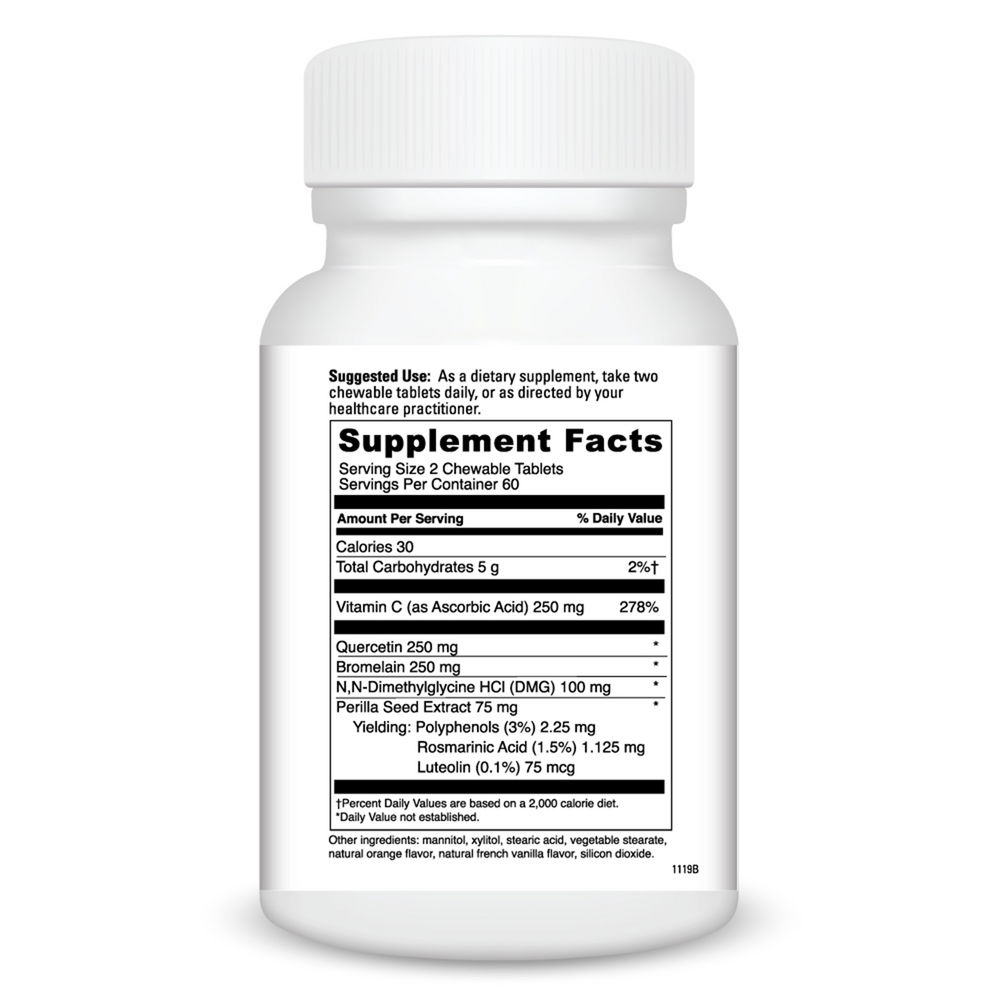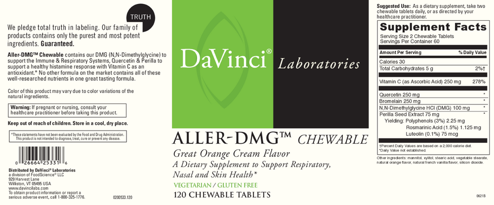 Aller-DMG™ Chewable is a dietary supplement to support respiratory and nasal comfort as well as skin health.* Aller-DMG™ is an advanced supplement that supports healthy histamine levels and immune system function.*