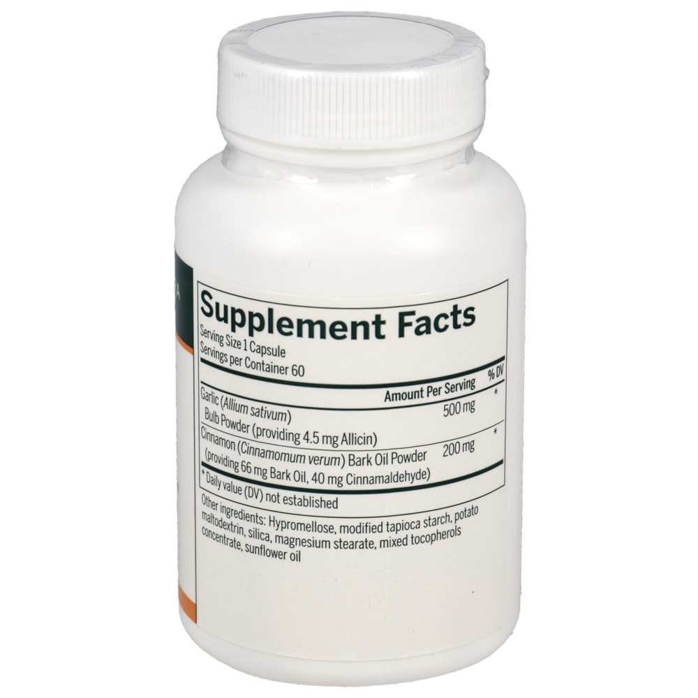 • Provides 10 mg of allicin and 80 mg of cinnamaldehyde per day