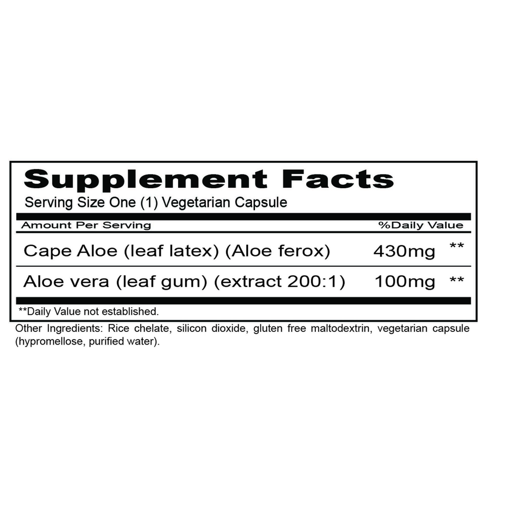 Aloe Complex supplies a powerful combination of wild crafted Cape Aloe (Aloe ferox) and a 200:1 leaf gum extract of Aloe vera.*Beneficial for occasional constipation.*