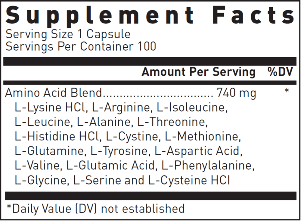 AminoBlend™ capsules contain a nutritionally balanced mixture of essential, conditionally essential, and important non-essential amino acids in their physiological L-crystalline forms.
