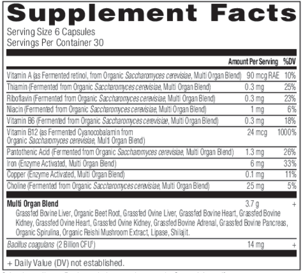 Consuming glandulars and taking glandular products is not new; historically, people have consumed the glands and various other parts of animals, such as the liver, kidneys and heart, for nourishment and overall health purposes. Often referred to as “Nature’s multivitamin/mineral,” organ meats are nutrient-filled—packed with iron, protein, vitamin A, B12 and folate, and many other important nutrients. Formulated for its multi-systemic support, Glandulars Multi Gland is Keto Friendly, raised without hormones or antibiotics, and grass fed.