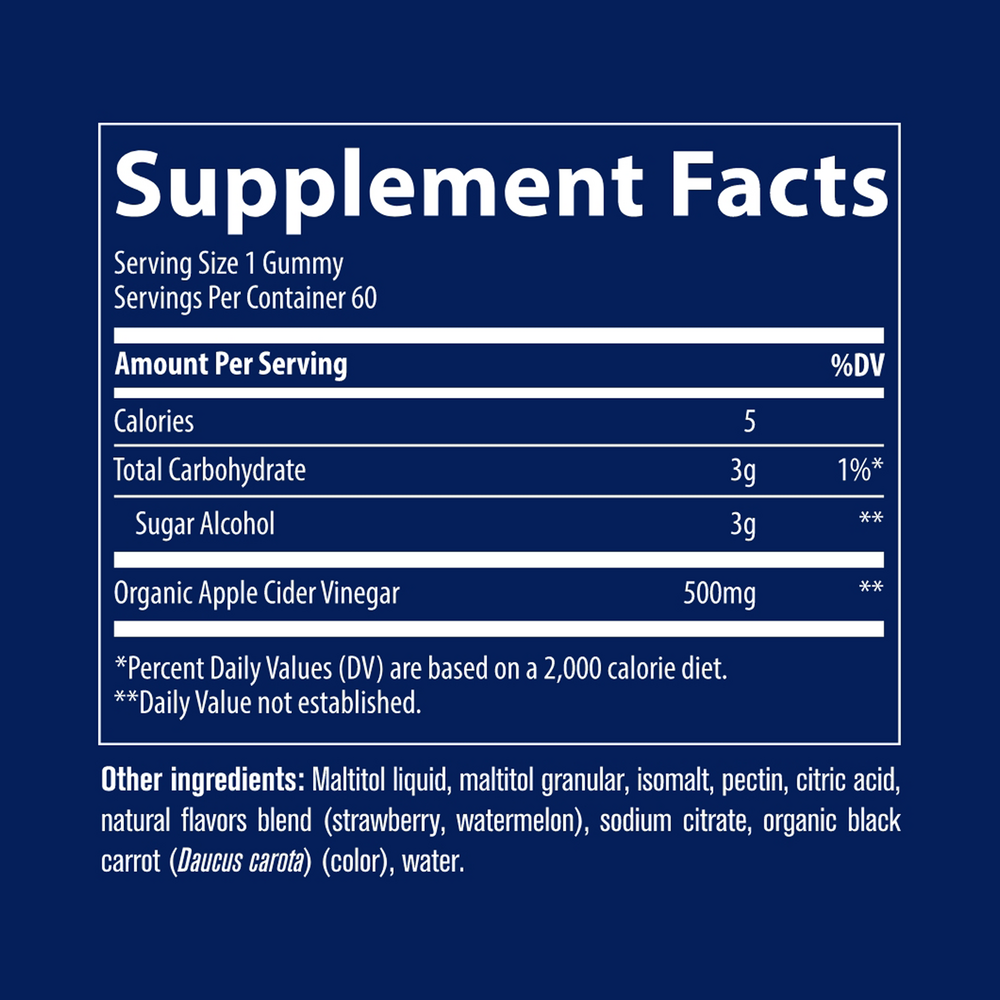 Apple cider vinegar has been used for centuries because of its many health benefits, including healthy bacteria for gut health, weight management, healthy blood sugar levels, and heart health.* Apple Cider Vinegar Gummies are a delicious way to provide your whole family with this healthy nutrient.*