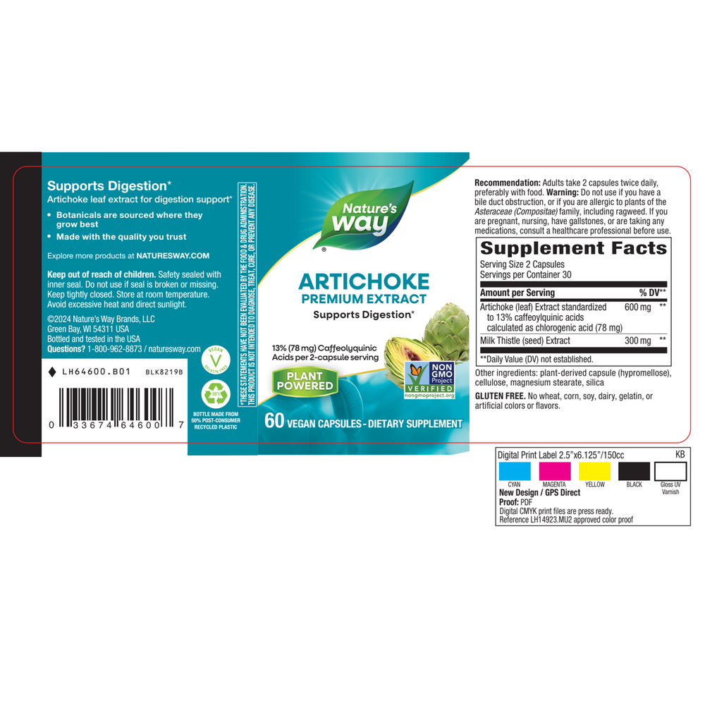 Artichoke extract is standardized to 13-18% caffeoylquinic acids. Supports digestion.*