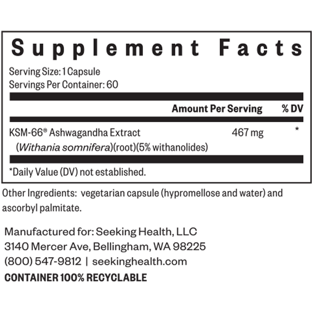Ashwagandha Extract by Seeking Health is formulated with a standardized ashwagandha extract that provides a potent, 420 mg, including 5% withanolides or active compounds. Also known as winter cherry, this herb has been used to promote vitality, longevity, and energy in Ayurvedic medicine. The active compounds in Ashwagandha provide a wide range of benefits and may help support healthy immune function, healthy mood, balanced stress levels, and normal thyroid function. These withanolide compounds assist the body in its ability to withstand stress.*