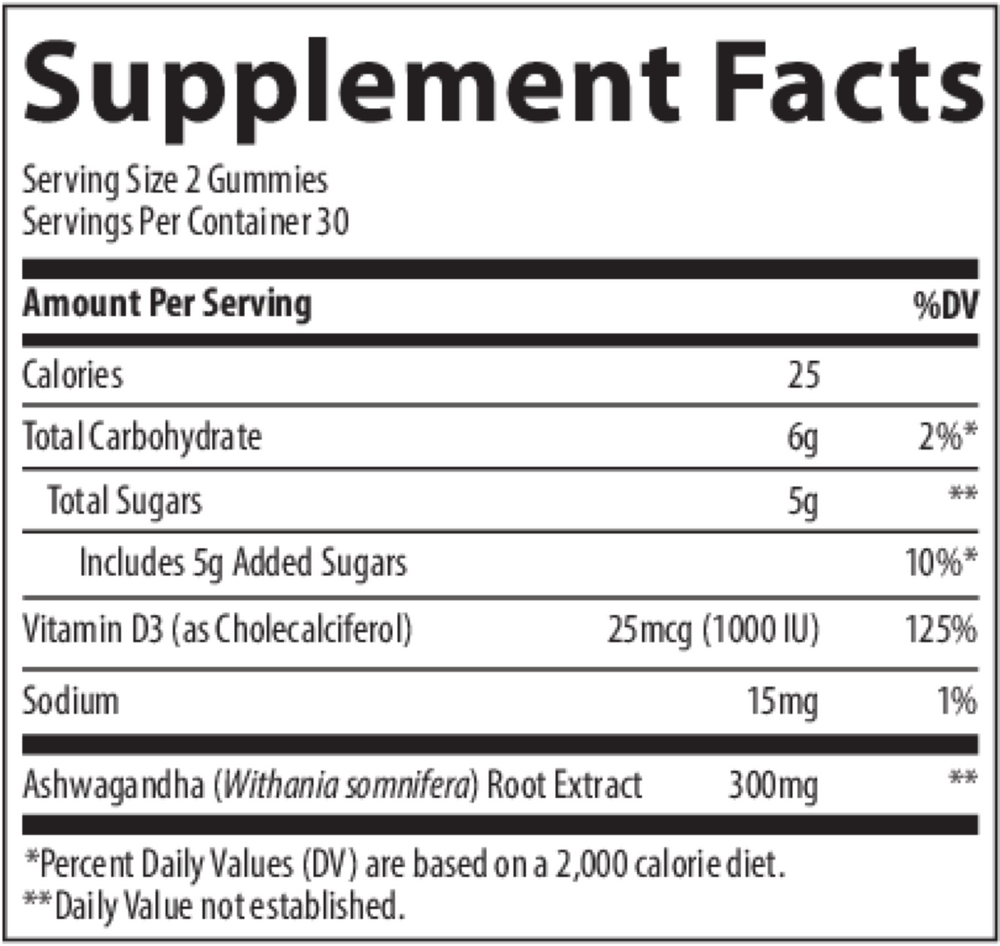 Ashwagandha Gummies are a delicious way to supplement your diet with this century-old adaptogenic herb. According to research, Ashwagandha helps support the body’s response to the many stresses of life as well as supporting strength and endurance.† It has also been shown to support a calm mood, memory, stress, sleep, and immunity.*