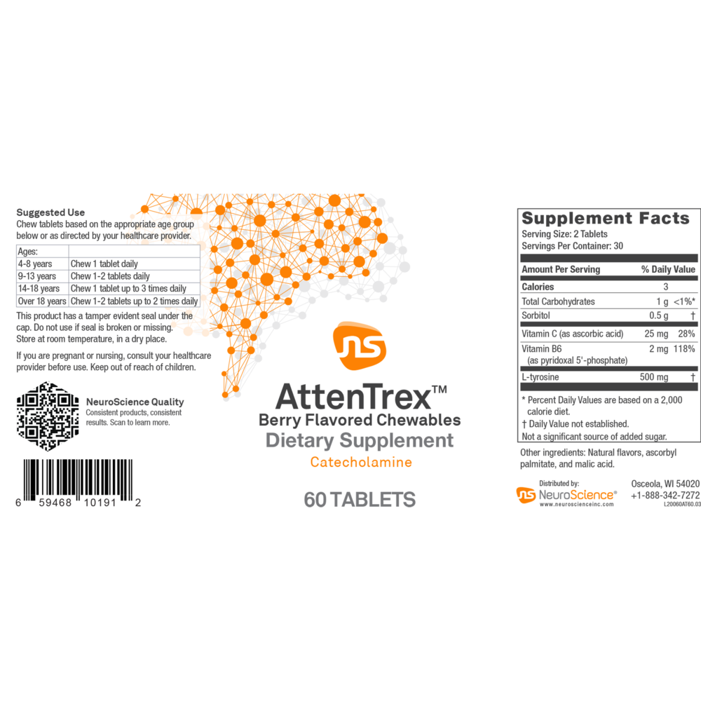 AttenTrex sources vegetarian ingredients with no artificial sweeteners or gluten, plus age specific suggested use starting at age 4.