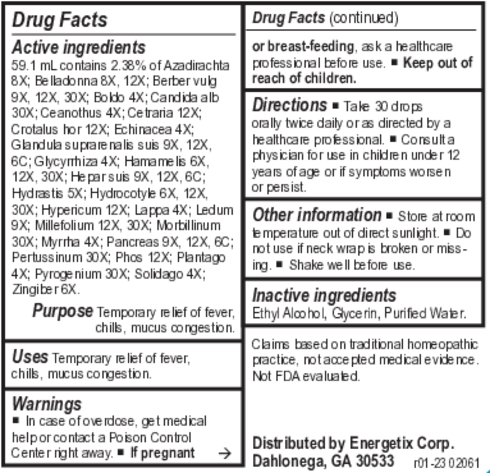 For symptoms of fever, fatigue, diarrhea, swelling, mucous congestion, pain in joints and muscles, and skin eruptions.‡