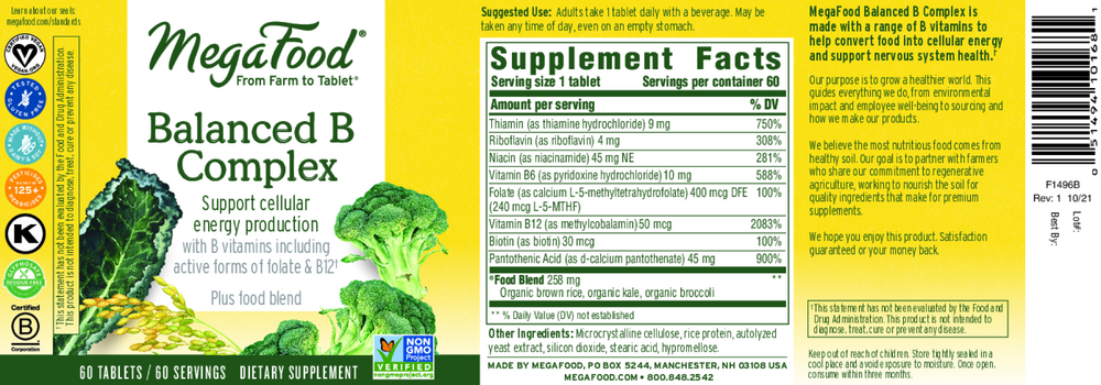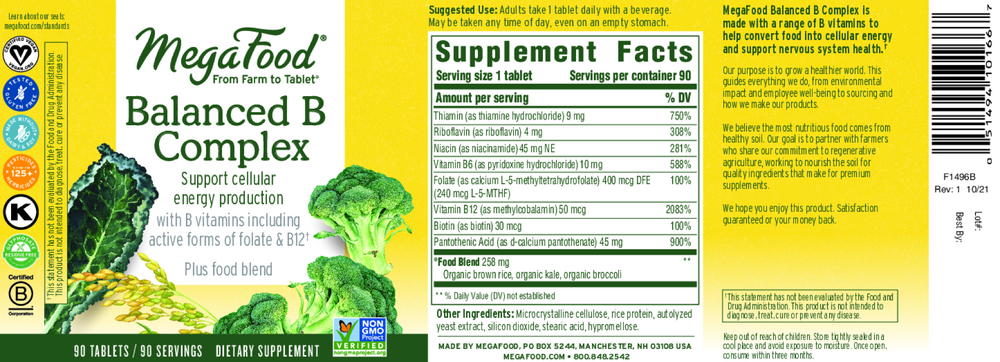 Want more pep in your step? MegaFood® Balanced B Complex supports your nervous system and assists in the conversion of food into energy with its balanced ratio of FoodState® B complex vitamins and nourishing real food like organic kale and brown rice.* It can be taken anytime throughout the day, even on an empty stomach.