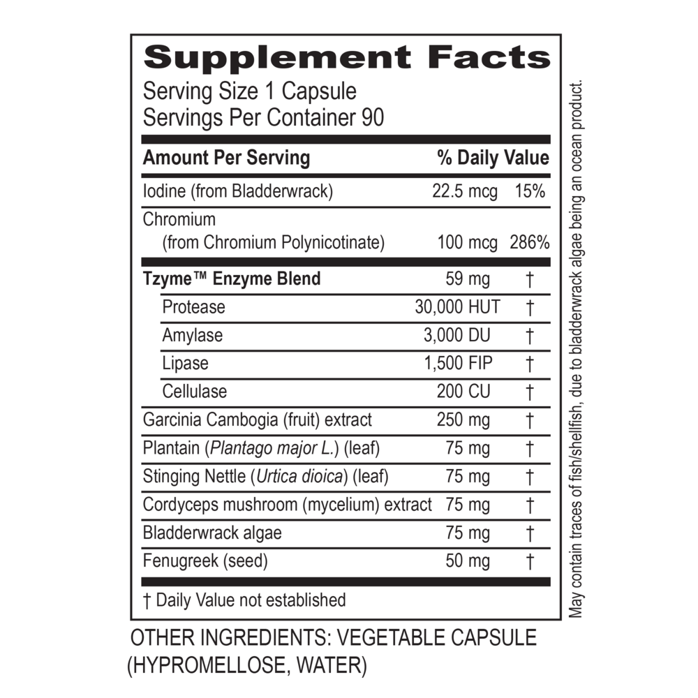 • Digestive Support. Garcinia cambogia and plantain support satiety.* Bladderwrack, cordyceps, and fenugreek support the pancreas, liver, and digestion.*