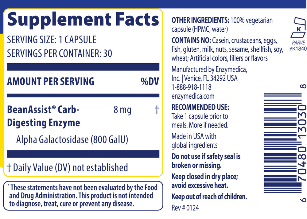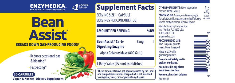 BeanAssist TM provides support for the digestion of beans, cabbage, broccoli and other gas-inducing foods*