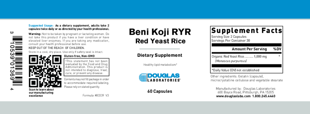 Beni Koji RYR is rice fermented by red yeast, called Monascus purpureus, to help support healthy blood lipid levels already in the normal range.*