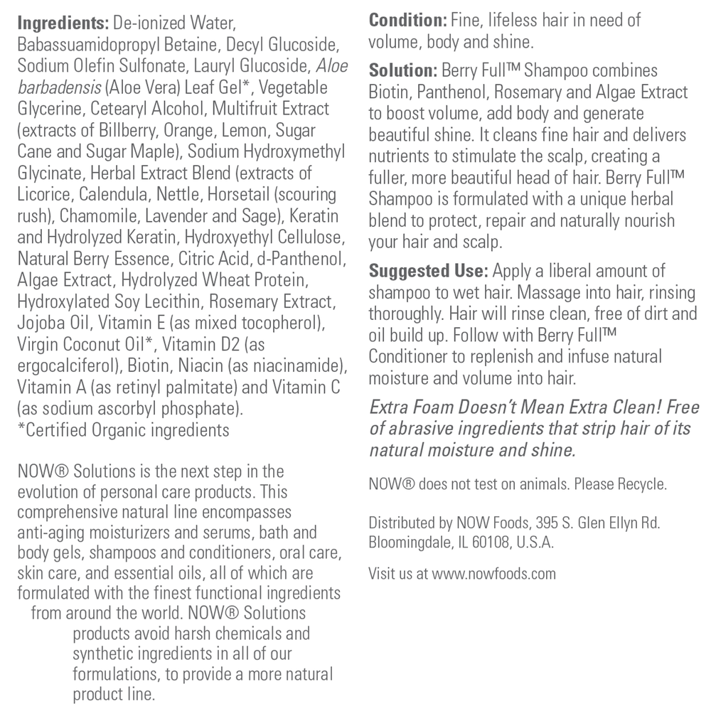 Solution: Berry Full™ Shampoo combines Biotin, Panthenol, Rosemary and Algae Extract to boost volume, add body and generate beautiful shine. It cleans fine hair and delivers nutrients to the scalp, creating a fuller, more beautiful head of hair. Berry Full™ Shampoo is formulated with a unique herbal blend to protect and naturally nourish your hair and scalp.