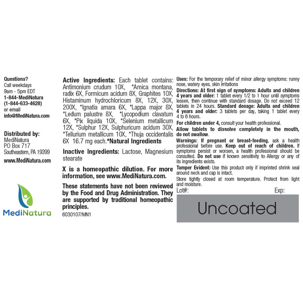 • Homeopathic approach – Homeopathy treats symptoms with a micro-dose of an active ingredient to stimulate the body’s own defenses. MediNatura's approach combines multiple potent actives, in multiple concentrations for greater relief of more symptoms.