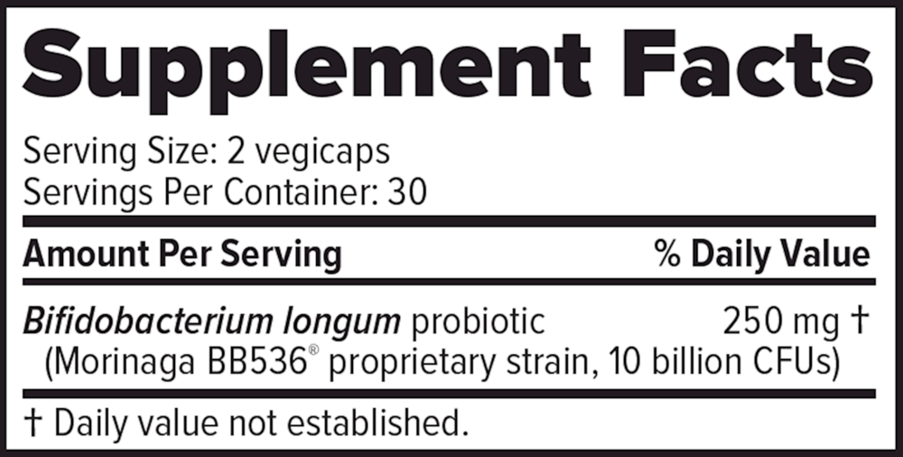 Morinaga BB536 is a proprietary strain of Bifidobacterium longum developed by Japan's second-largest dairy company. BB536 is one of the world's most researched and effective probiotic strains, and the top-selling probiotic ingredient in Japan.