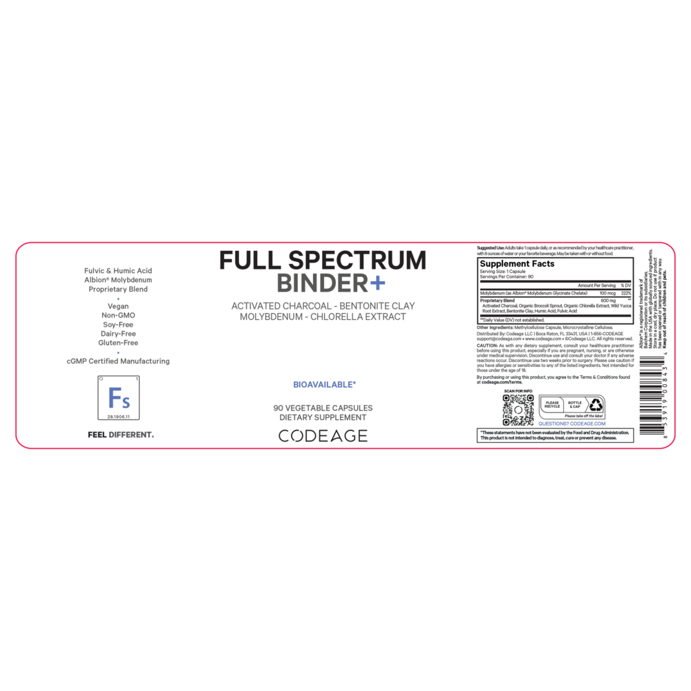 Codeage Binder + offers a premium blend of activated charcoal, bentonite clay, humic acid, fulvic acid, organic broccoli sprouts, organic chlorella extract, wild yucca root extract, and molybdenum in an all-in-one formula. This solution is an alternative herbal cleanse and is easy to use.