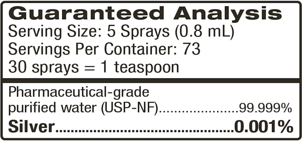 Some colloidal silver products of higher concentration (ppm) claim that one teaspoon equals multiple teaspoons of our 10 ppm product. On the contrary, scientific peer-reviewed literature has shown that silver is only useful when it is positively charged (bio-active). Bio-Active Silver Hydrosol, with greater than 98% bio-activity, is 8x more potent than a 250 ppm colloidal silver. Higher ppm also equals risk of toxicity.