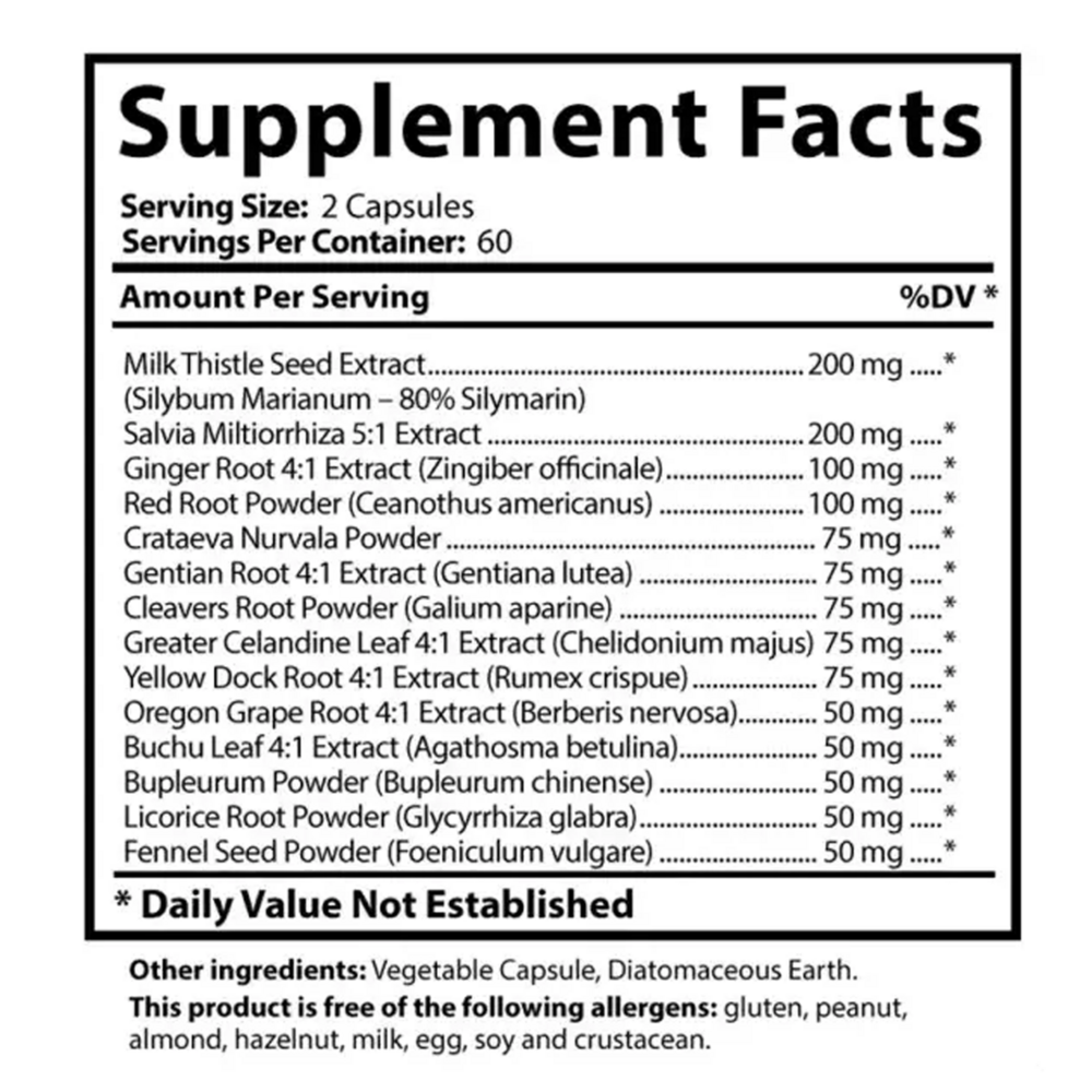 We included Milk Thistle Seed extract, Bupleurum Root extract, Licorice Root powder, Cleavers Herb extract, Red Root for liver support.
