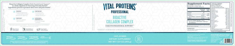 Vital Proteins Professional is an exclusive line of collagen products for healthcare professionals developed with a team of leading nutrition experts and is centered around clinically-studied bioactive collagen peptides that offer specific, targeted benefits. Daily Foundational Support is made with research-backed ingredients in efficacious amounts. It combines three types of bioactive collagen peptides with liposomal vitamin C. This is an unflavored powder that easily dissolves in hot or cold liquids, and can conveniently complement a daily wellness regimen.