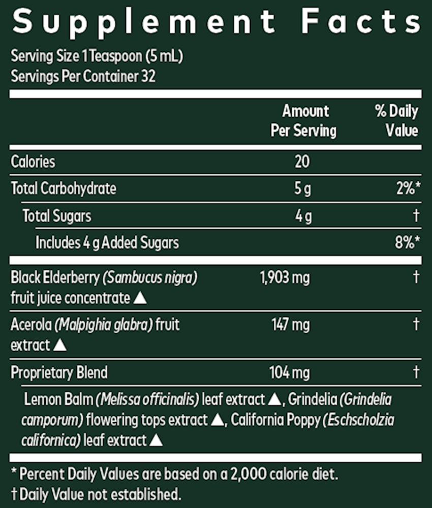 Made with organic Elderberries, fresh-pressed shortly after harvest. Gaia Herb's Certified USDA Organic syrup concentrates the juice from 14.5 grams of Elderberries into a single, tasty teaspoon.*