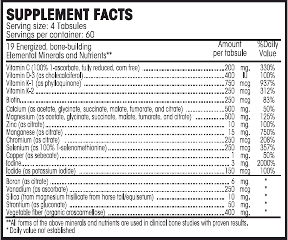 **All forms of the above minerals and nutrients are used in clinical bone studies with proven results.
