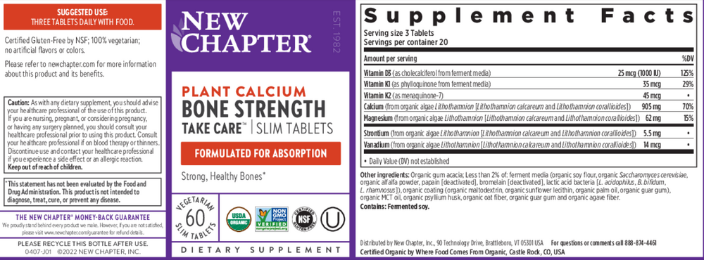 The certified organic plant calcium in Bone Strength Take Care‚Ñ¢ is sourced from Red Marine Algae (Lithothamnion) sustainably harvested from along the pristine Icelandic coastline. Many calcium supplements are not from plants but from limestone rock which lacks many other bone-supportive nutrients and cannot be considered organic.