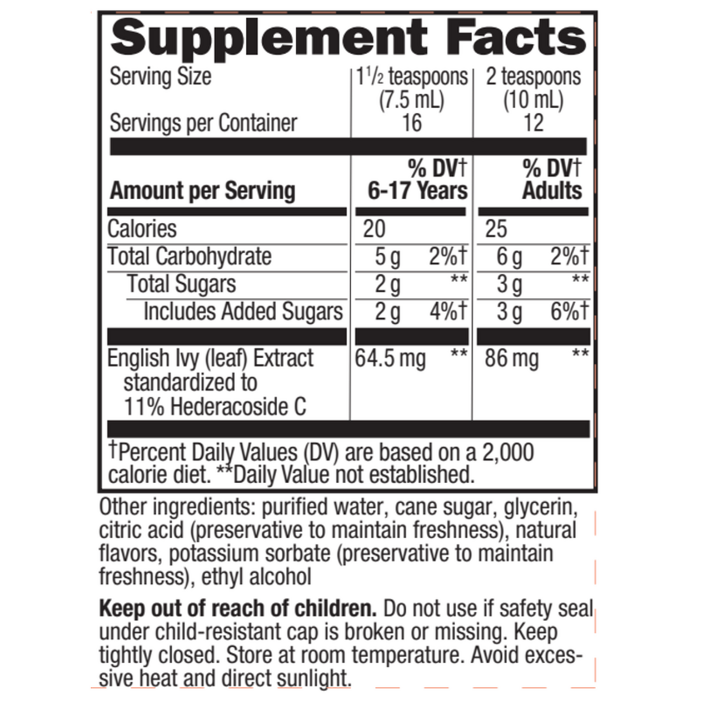 Ivy leaf extract is a traditional ingredient that has been used for centuries to support bronchial health.* The exclusive ivy extract in Bronchial Soothe provides herbal support for optimal lung and bronchial passageway health.* Unlike alcohol-based syrups, Bronchial Soothe is ideal for the entire family!
