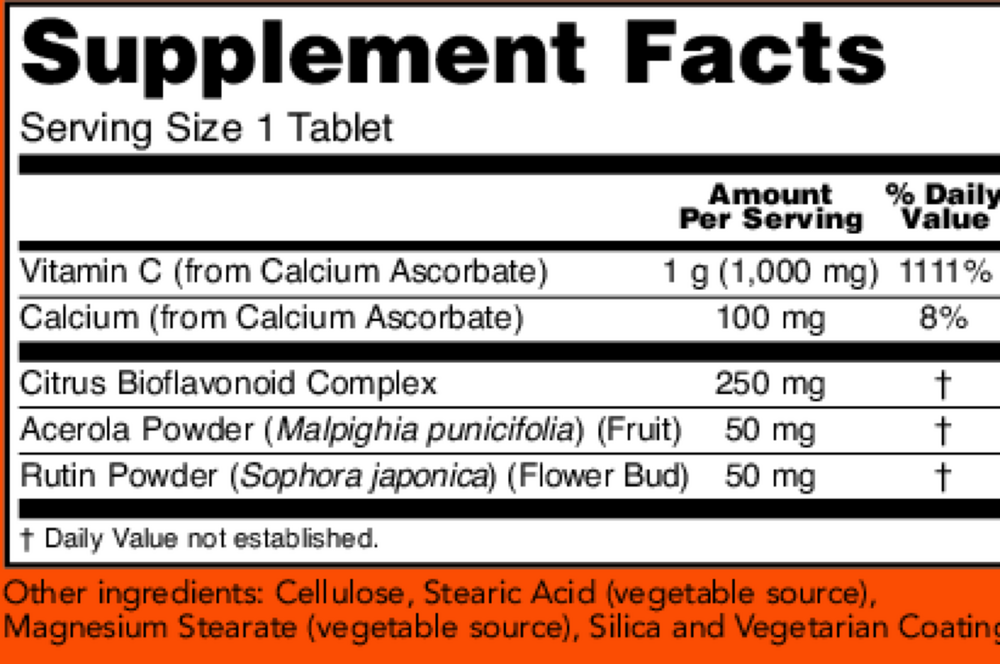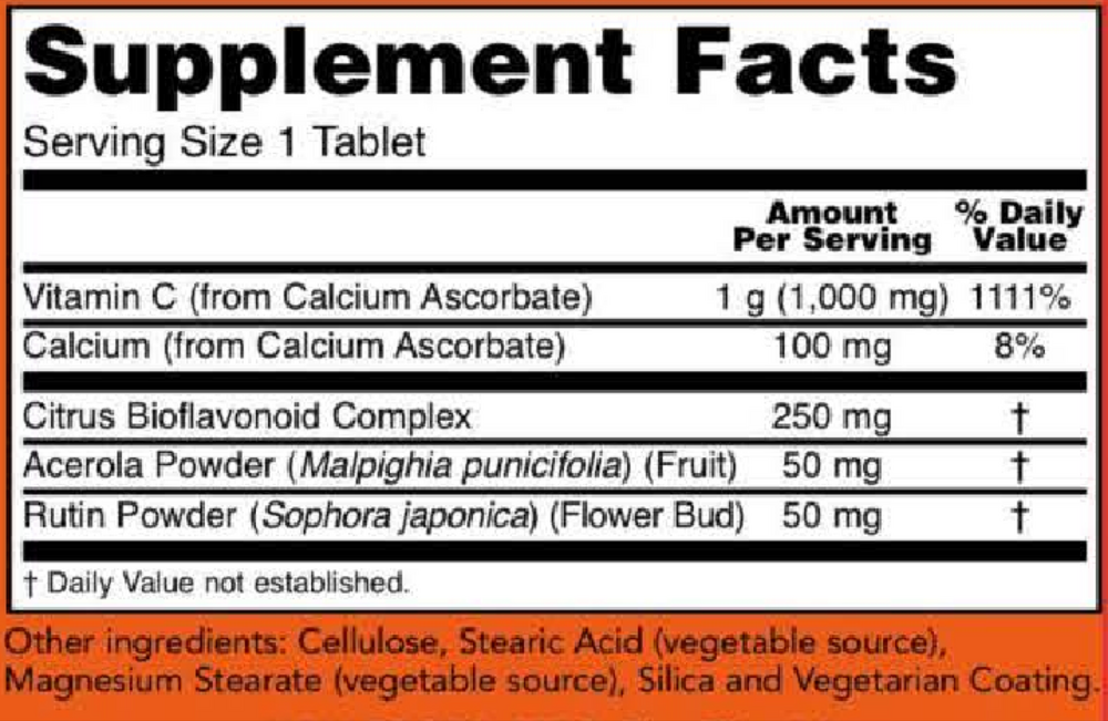 Vitamin C is a water soluble nutrient well known for its vital role in the immune system.* Vitamin C is also necessary for the production of collagen (a structural protein in connective tissue) and is therefore important for skin, bone, and joint health.* Vitamin C is needed for amino acid metabolism, neurotransmitter synthesis, and the utilization of many nutrients, such as folic acid and iron.* It is also a highly effective antioxidant that can help maintain healthy tissues by neutralizing free radicals generated during normal metabolism and exposure to environmental stressors.* This product supplies Calcium Ascorbate, a buffered form of Vitamin C that is bioavailable and non-acidic; it is enhanced with Bioflavonoids, which work synergistically with Vitamin C.*