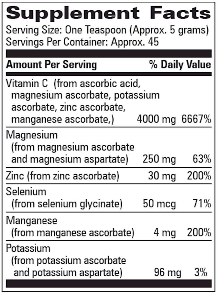 Note: Calcium & Sodium ascorbate have been intentionally left out of this formula.