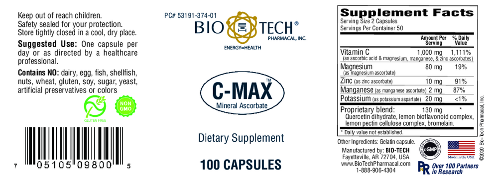 • C-Max provides buffered vitamin C as a blend of natural citrus bioflavonoids and fully-reacted mineral ascorbates, which are less acidic than ascorbic acid and are gentle on the digestive system.*Health Benefits:
