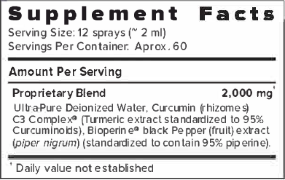 Curcumin is known for its unique ability to bolster the body’s inflammatory response and to provide joint and muscle support. C3 Curcumin Complex Extra Strength provides a powerful combination of three active curcuminoids along with extract from black pepper fruit in a simple to use, great tasting spray.