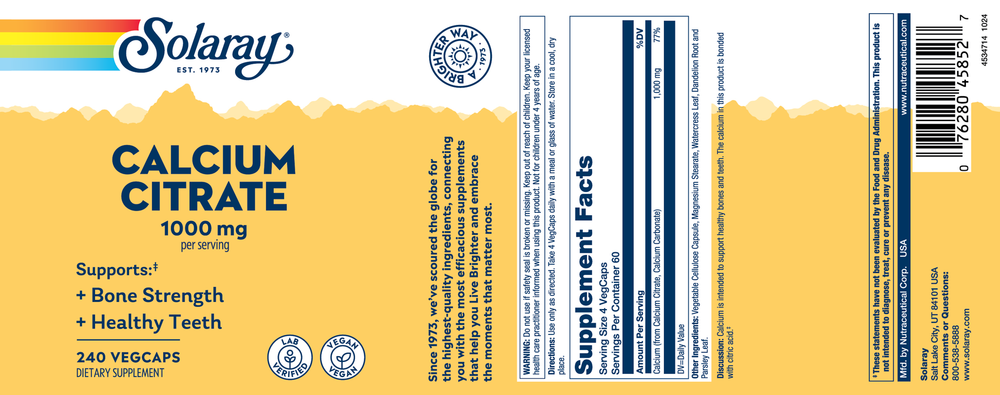 Calcium is intended to support healthy bones and teeth. The calcium in this product is bonded with natural citric acid and is specially formulated for people with low stomach acid. A special base of herbs has also been included for additional nutritive support.