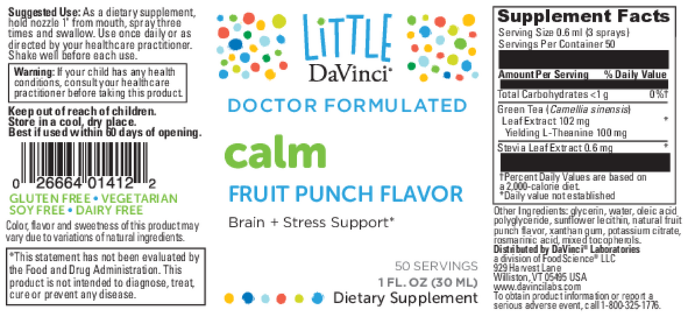Ingredient Quantity Green Tea Leaf Extract 102 mg Stevia Leaf Extract 0.6 mg L-Theanine 100 mg Other Ingredients: Glycerin, water, oleic acid polyglyceride, sunflower lecithin, natural fruit punch flavor, xanthan gum, potassium citrate, rosmarinic acid, mixed tocopherols.Serving size:  3 Spray