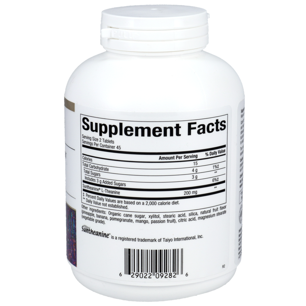 Contains Suntheanine®, a pure form of L-theanine, produced via a patented enzymatic process resulting in 100% pure L-isomer theanine.
