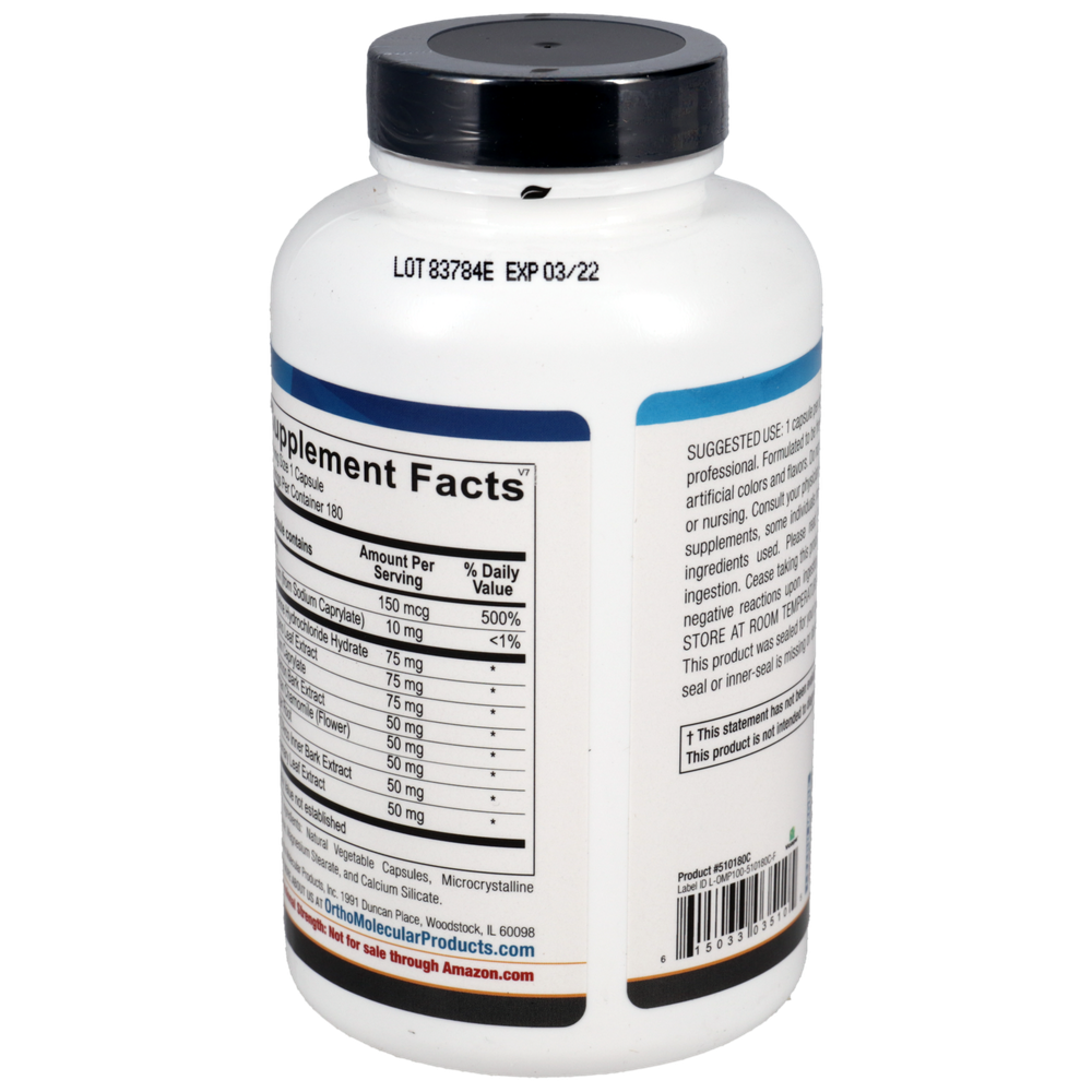 Candicid Forte provides a blend of nutrients, potent botanicals and essential oils to promote healthy microbial balance and immune support. Formulated with the goal of building a healthy gastrointestinal (GI) flora, Candicid Forte includes biotin, a nutrient that inhibits yeast from converting into the more aggressive fungal form. In addition, sodium caprylate is included to disrupt the metabolism of Candida and create a hostile environment for colonization. It also includes potent botanicals, such as berberine HCl, Pau d’Arco, oregano, rosemary, cinnamon and ginger, to sooth the GI tract, provide potent antioxidant support, and ensure microbial balance.*
